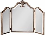 Ellington Table Top Vanity Mirror 37"x25"x2" Overviews This table top mirror features two hinged side mirrors. Frame is finished in heavily antiqued silver champagne with a charcoal gray glaze. Mirrors are beveled. May be hung or set on countertop. ![]()